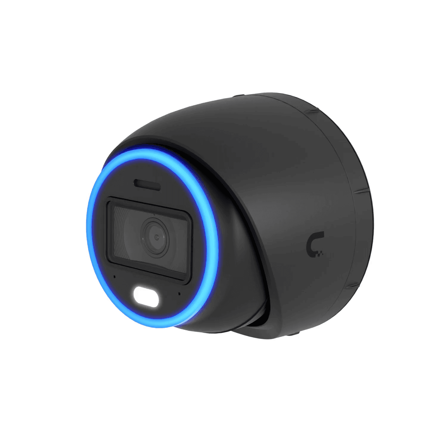 All-weather, vandal-proof 4K PoE+ turret camera with enhanced AI capabilities and IR and visible LEDs for night vision.